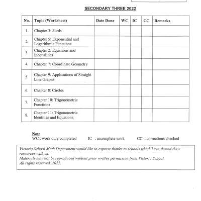 2022 VS Sec 3 Express A-Math Topical Additional Math (soft copy)